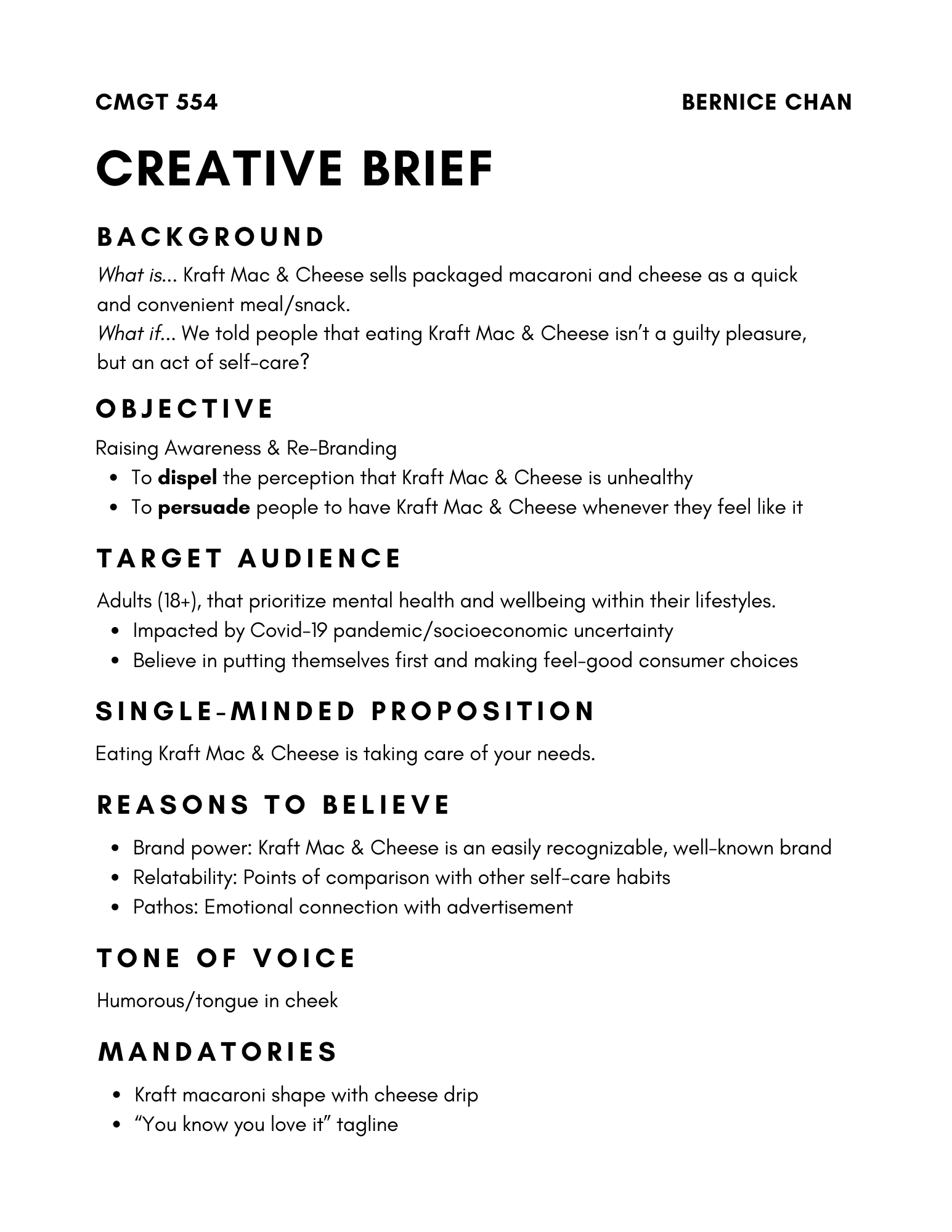 Poster for Kraft Mac & Cheese, with accompanying creative brief.