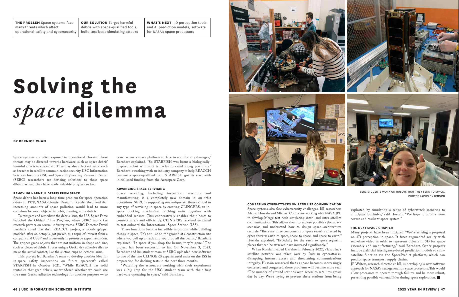 Article about USC ISI researchers building tools to solve safety problems in space operations and creating test beds to simulate cyberattacks in space.